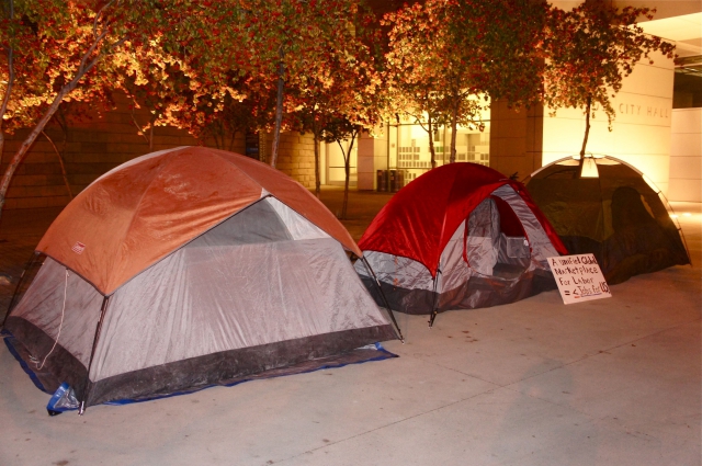 Despite the arrest of Occupy San Jose participants early Friday morning, members of the movement quickly rebuilt, raising three tents outside City Hall.