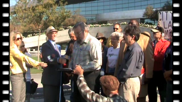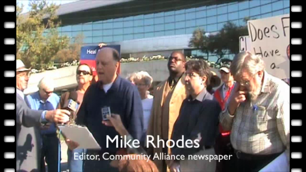 Homeless people and their supporters held a press conference at Fresno City Hall today calling on the mayor to stop the plan to conduct massive evictions of the homeless, which are scheduled to begin Thursday, October 27 at 7 a.m. on Santa Fe, just south of Ventura. A video of each of the press conference speakers is below. Below: Mike Rhodes (video 2:31 minutes)