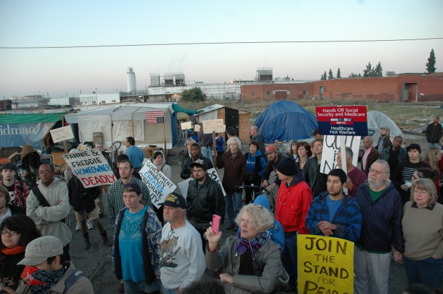While there were over 100 community supporters to protest the destruction of the homeless encampment on Santa Fe in downtown Fresno, that was not enough to stop Caltrans and the City of Fresno. The encampment, which is spread across a very long block in the old industrial section of downtown, proved to be strategically impossible to defend, with so few people. If there had been 1,000 advocates, the city and Caltrans would have had an extremely difficult time fulfilling their mission.