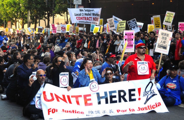 Workers at Hotel Frank have been under attack since Wells Fargo foreclosed on the hotel in May, 2010. Wells Fargo brought in a new management company, Provenance, which refuses to recognize the UNITE HERE Local 2 contract, has dangerously increased the workload for room cleaners and other workers, and has not paid anything for medical coverage or pensions.
