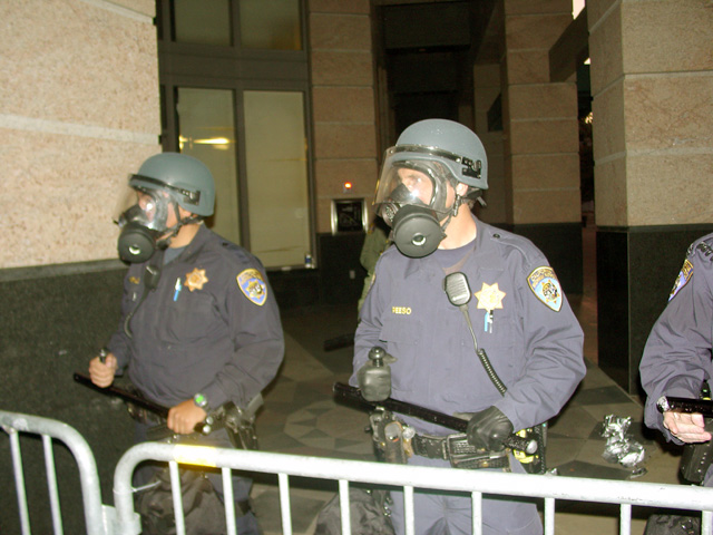 In using such overwhelming and asymmetrical force against largely peaceful demonstrators, Oakland police violated the terms of the their Negotiated Settlement Agreement (NSA) with a federal court in several ways, including that they allowed mutual aid police forces to use weapons not permitted for use by OPD and they failed to have EMTs (emergency medical technicians) on hand to deal with injuries caused by police violence. The NSA came about as a result of the Oakland Riders scandal, with stipulations added after the violent OPD attack on anti-war protesters at the Port of Oakland in 2003.