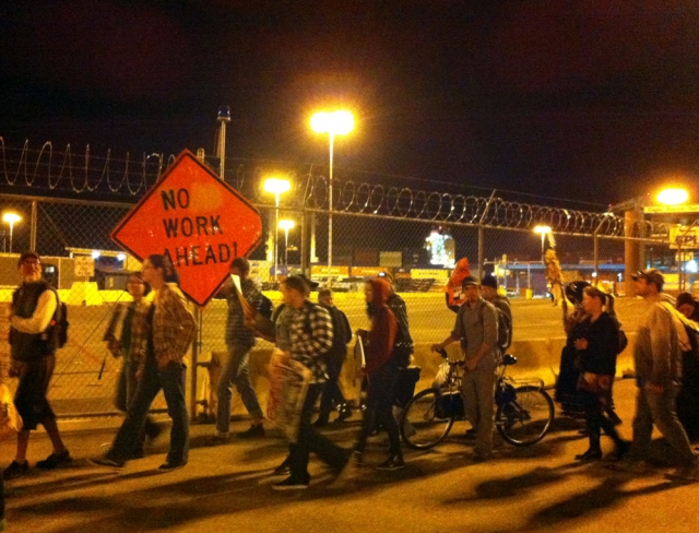 After tends of thousands marched and occupied the Port of Oakland throughout the day on November 2, some actions were still going on late into the night.