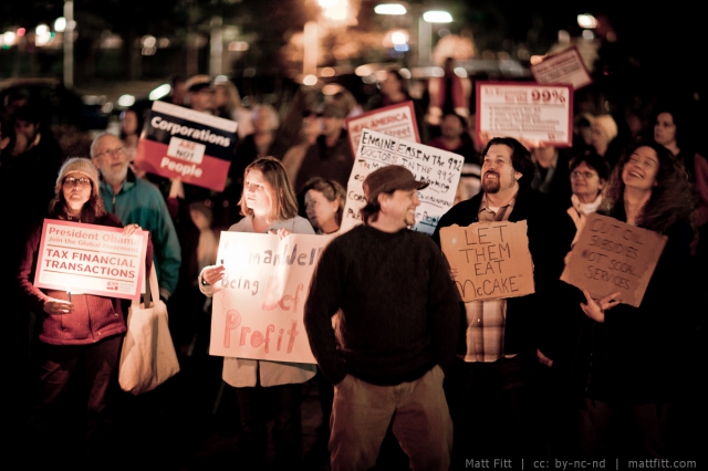 I notice there isn't one sign relating to a local issue nor any exposing the ongoing attacks on Occupy Santa Cruz. Does anyone know if those "inconvenient-for-local-1%" issues actually were raised in any of the signs? Were any of these matters mentioned?