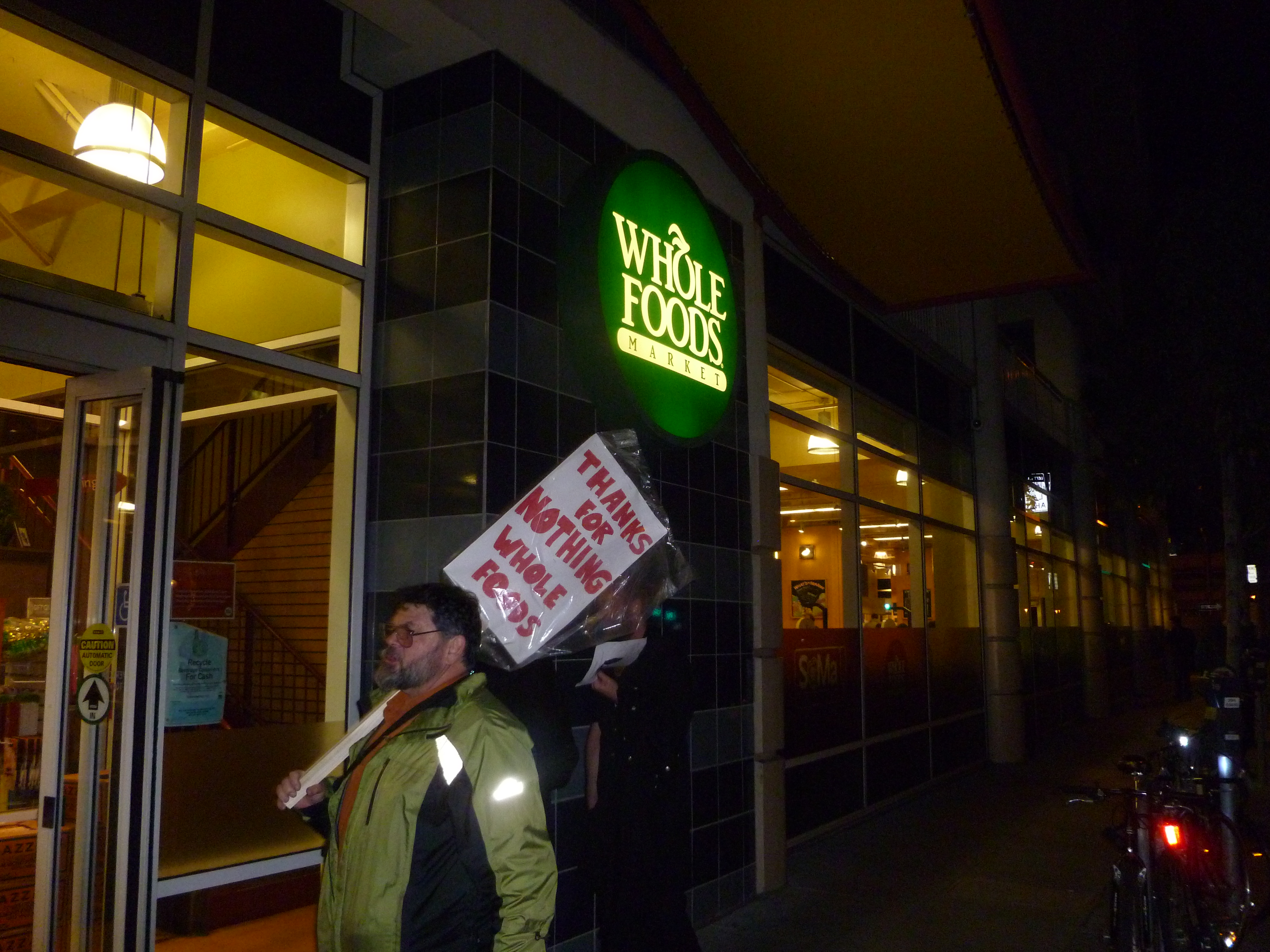 A picket line was held at San Francisco Whole Foods SOMA store to demand the rehiring of long term worker Natalia Fon.