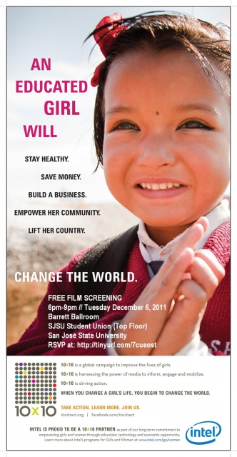 Join Intel for a film screening focusing on the right to education for women and girls around the world. Learn more about the 10x10 campaign here: http://10x10act.org
