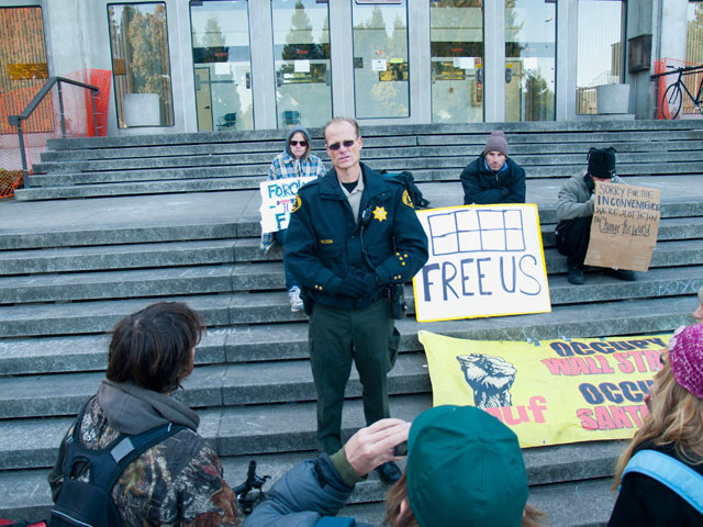 On December 4th, approximately 60 officers with the Santa Cruz Co. Sheriff's Department dismantled the geodesic dome and other Occupy Santa Cruz structures which were on the steps of the county courthouse.