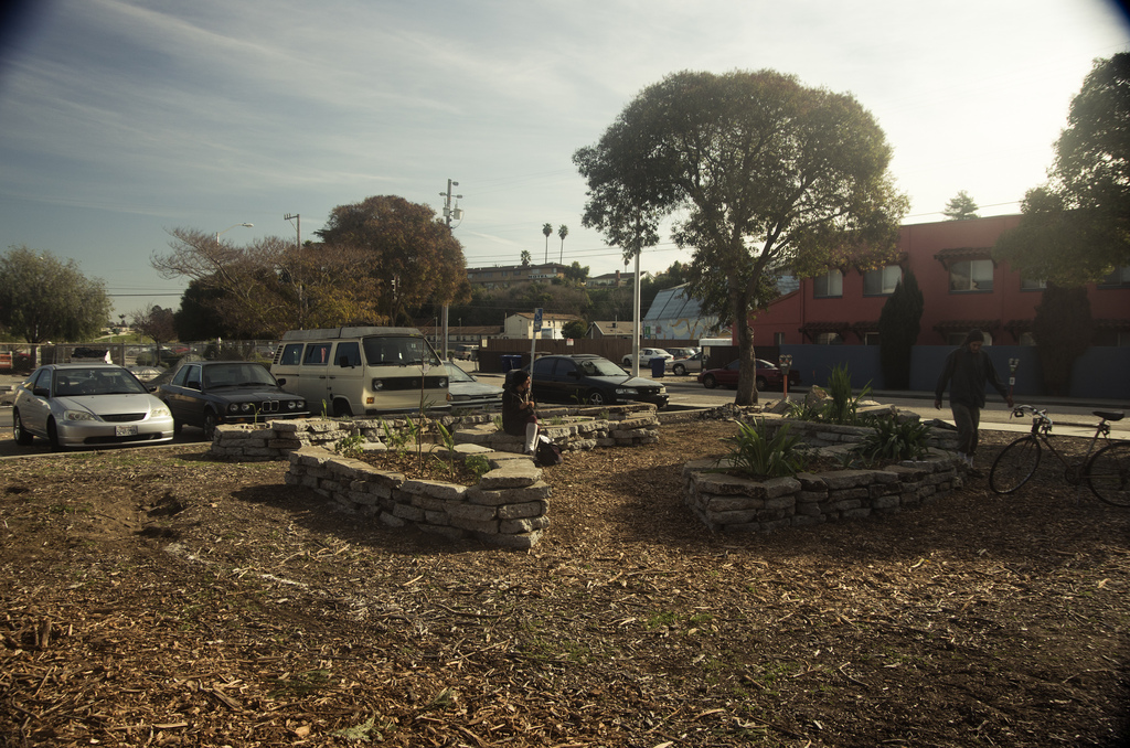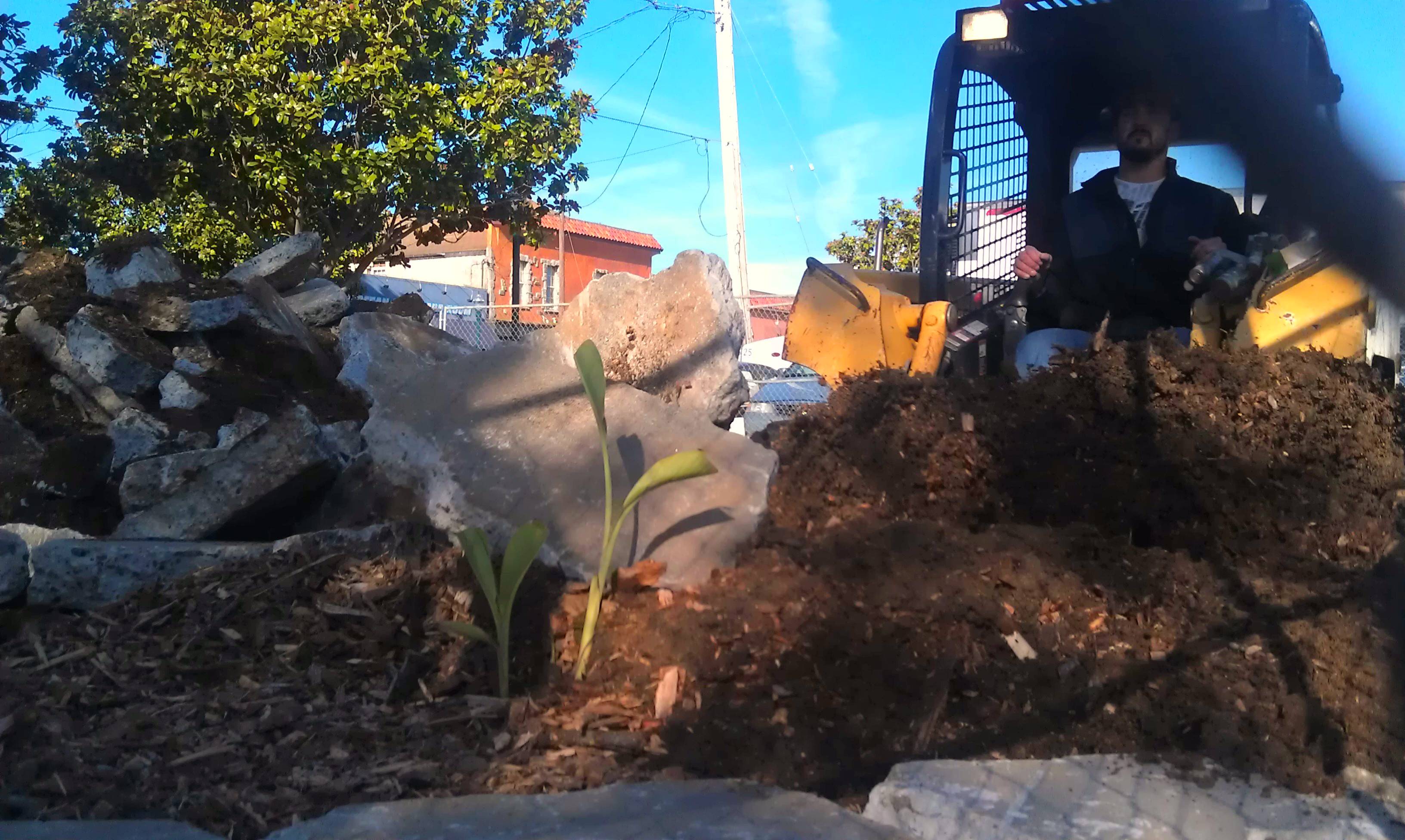 Datum Construction bulldozed the community park on the corner of Spruce and Pacific this morning. The garden is gone for now, but we still have hope that we can create an even better, more vibrant park in its place. They have plans, as of today, to install corporate landscaping in the lot, but that isn’t good enough. Their plans simply have a few small ornamental bushes next to the parking spots, while the rest of the 40x60 lot remains barren.