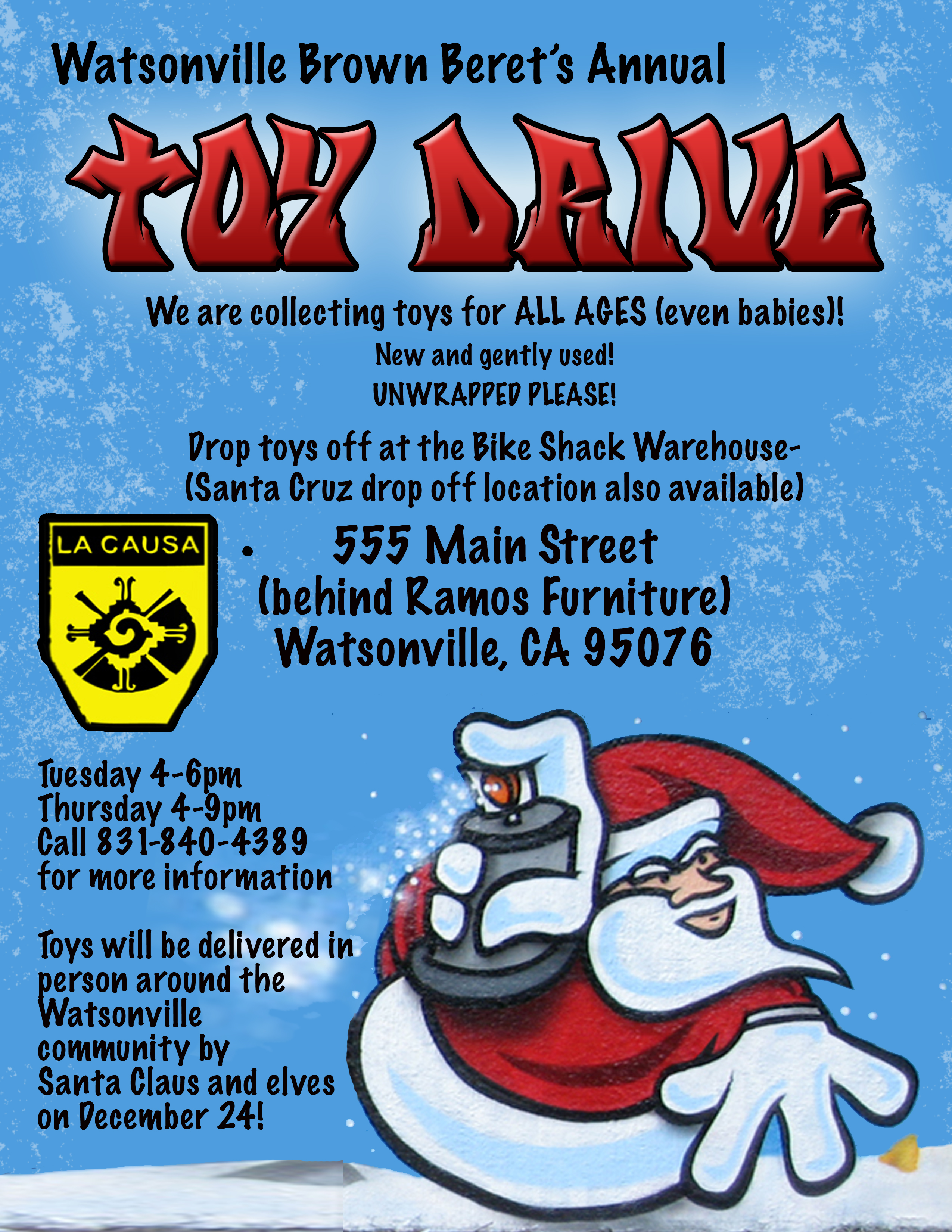 Toy Drive Drop Off: 555 Main St. (behind Ramos Furniture) Watsonville 95076