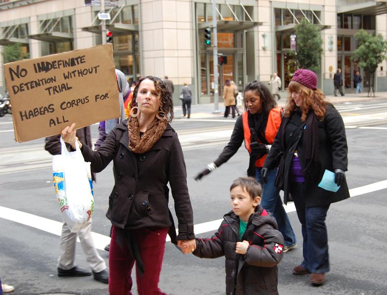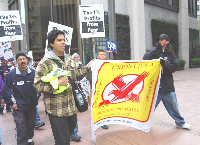 Immigrant rights activists and supporters marched in the financial district to protest targeting immigrants and their families. Once again the 1% use agencies and institutions to harrass workers. Wells Fargo was picketed for their investments in detension centers. The march was joined by marchers from OccupySF and briefly took over an intersection in the middle of the finacial district before marching on to the ICE headquarters.