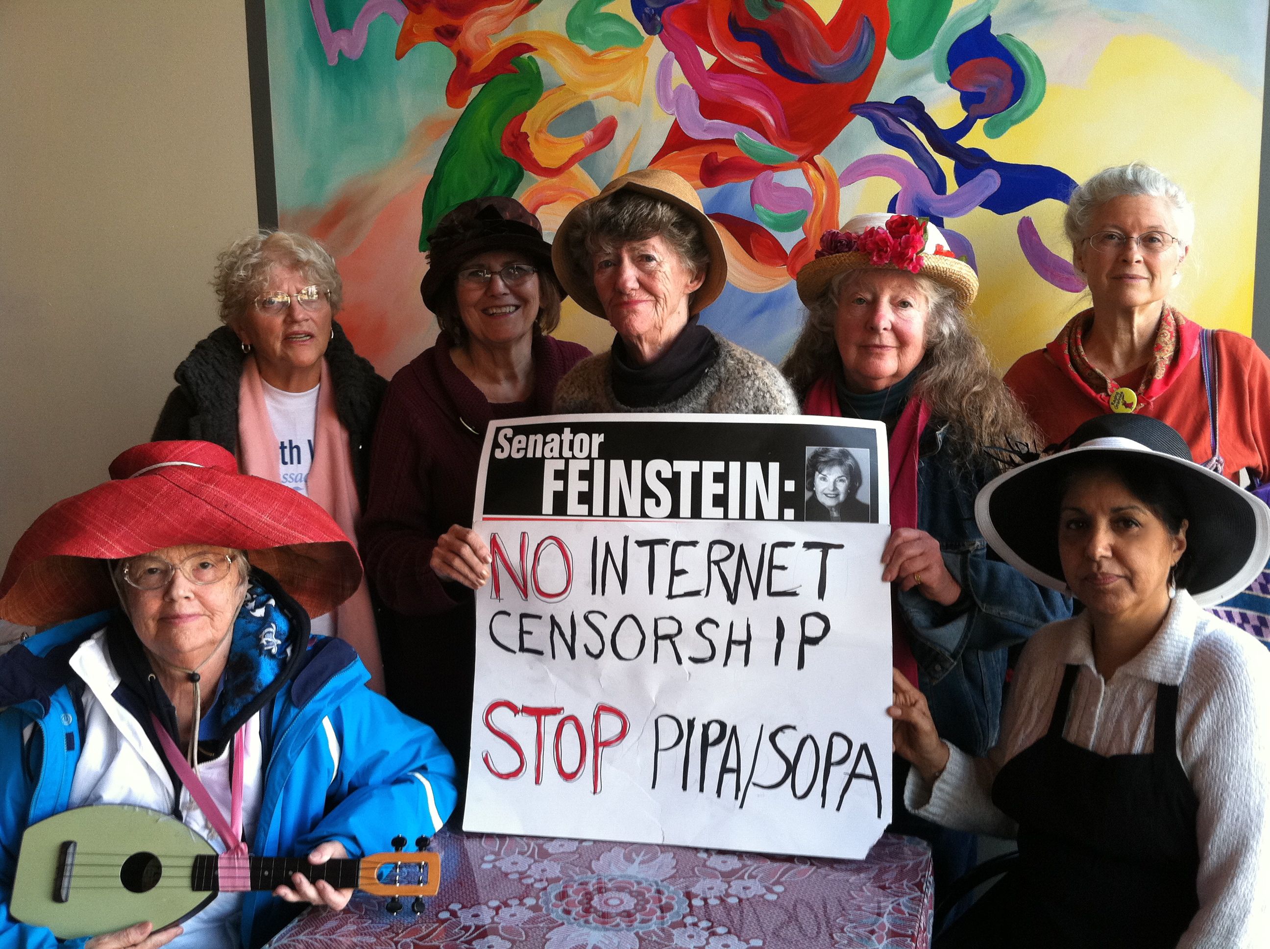The Raging Grannies are closely following the “PROTECT IP Act” (PIPA) and House version, the “Stop Online Piracy Act” (SOPA). We understand that you are a co-sponsor of PIPA.
