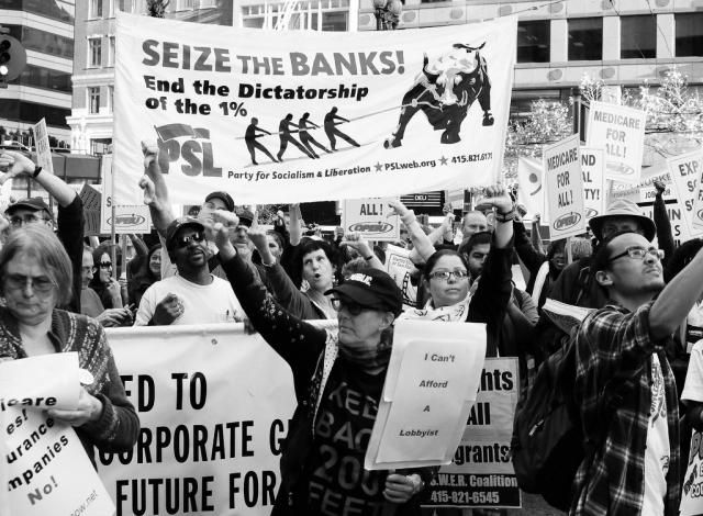 In 2008-09, the big banks and other corporations received trillions of dollars in public bailouts – our money. The politicians said that they were “too big to fail,” and that the bailed-out banks would help to “restart the economy.” Three years later, tens of millions of people have lost their jobs, homes, health care and pensions, while the banks are sitting on top of mountains of cash, wealth that was created by working people. Seizing the assets of the banks, while protecting people’s accounts, would provide the funds to put millions of people back to work building and staffing new schools, daycare centers and clinics, and rebuilding the crumbling infrastructure of the country.