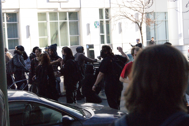 About 15 minutes into the march, the police attempted to kettle the protesters. This march was entirely non-violent; nobody threw shit at the cops and an unlawful assembly was never declared. . This is a very important detail. The march was 1000+ strong, conservatively. The police were very mobile, using 25+ rented 10seater vans to bring the 'troops' to the march.