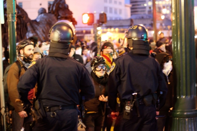 After several attempts at kettling marchers, OPD finally trapped us at 23rd and Broadway in front of the YMCA. OPD officers who arrested us claimed that we were given dispersal orders at 3PM and that this order remained in effect at 7:40 when they arrested us. Myself along with two other journalists (that I witnessed) were swept up in the kettle and arrested along with close to 300 marchers.