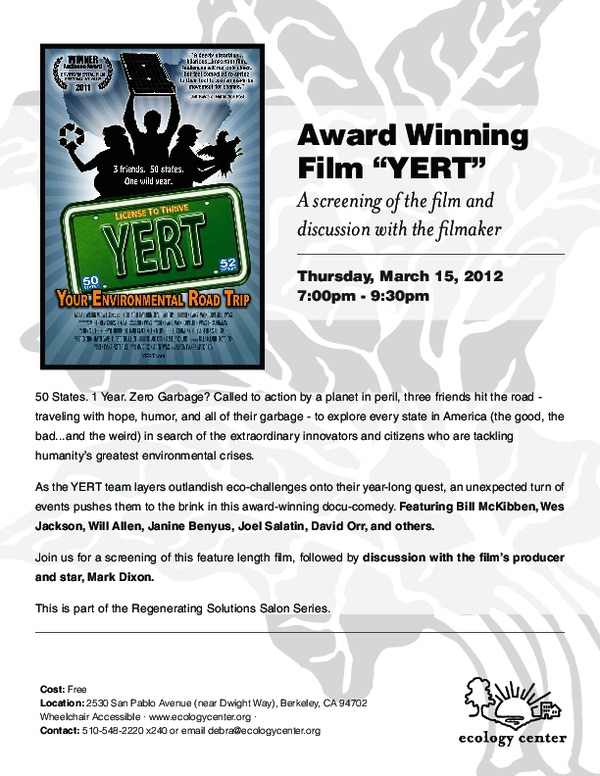 Award Winning Documentary "YERT" (Your Environmental Road Trip) with Filmmaker Mark Dixon