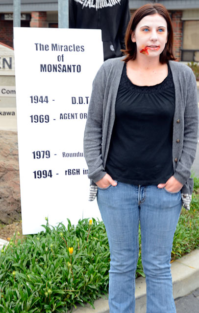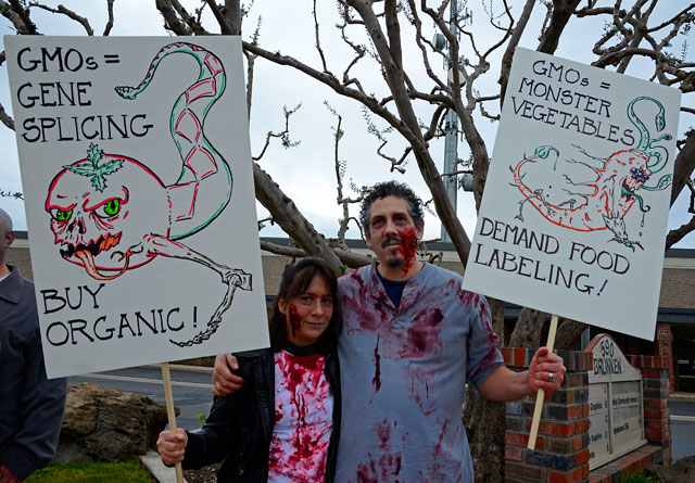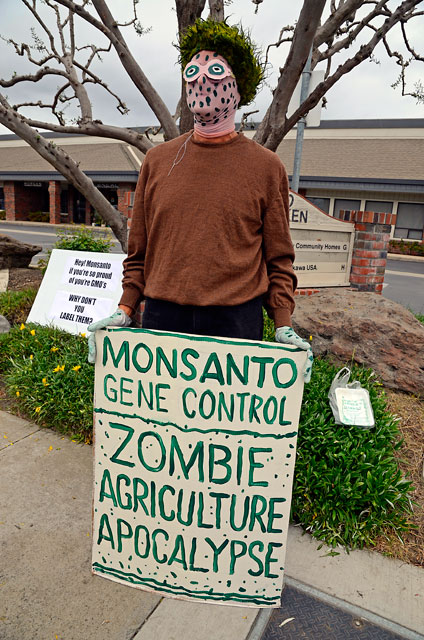 On March 16, approximately two dozen community members, many dressed as zombies, demonstrated at the office of Seminis, Inc., which is owned by Monsanto Company and located in the city of Salinas. The group was protesting, in their words, Monsanto's efforts to, "take total control of the World's seed supply by patenting genetically modified seed."