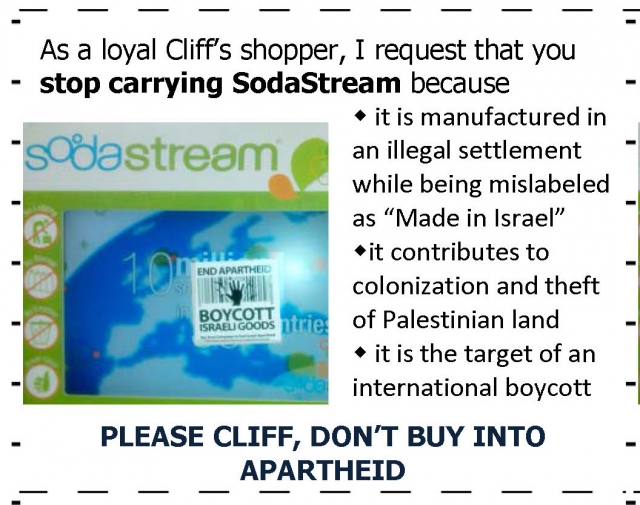 Tell Cliff's to dump SodaStream until the company stops profiting from occupation.