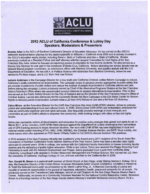 For more information on the ACLU's Conference & Lobby Day 2012, see