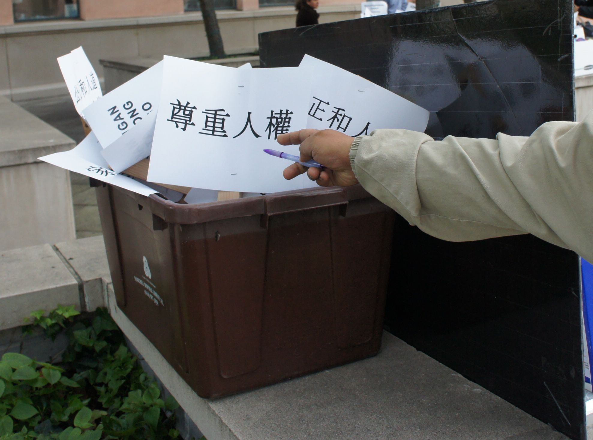 Carrying signs in Spanish, Chinese, English, and Tagalog, demonstrators called out for immigrant rights on May Day in Mountain View, California.