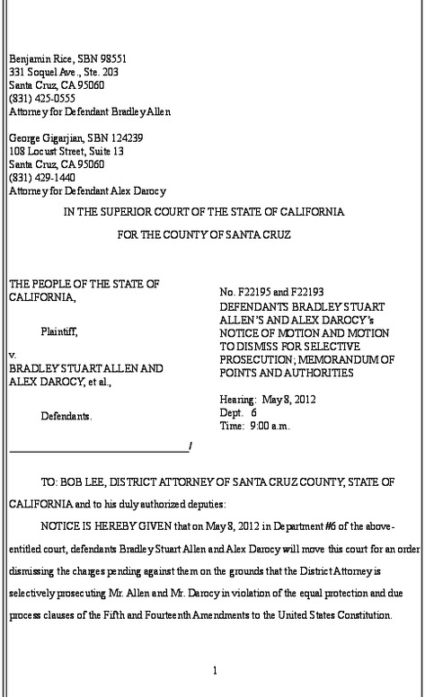 The 995 motion to dismiss, and a motion to dismiss for selective prosecution, were filed by Allen's attorney, Benjamin Rice, and Darocy's attorney, George Gigarjian.