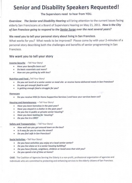 CASE, the Coalition of Agencies Serving the Elderly wants YOU to tell your story about your life and the effects of these cuts on you: