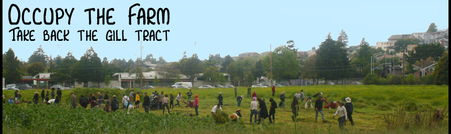 Thursday, May 10th: Albany, CA -- Professor Miguel Altieri, researcher at the Gill Tract for 31 years, planned to begin planting his research plot with his students yesterday morning. An hour before he was scheduled to begin, the UC administration barricaded the Gill Tract with concrete, metal barriers, and dozens of police who threatened farmers with "chemical agents and impact force." In a blatant affront to academic freedom, Dr. Altieri was told he lacked the "authorization" to conduct his research. A bulldozer loomed on the edge of the farm for the majority of the morning.