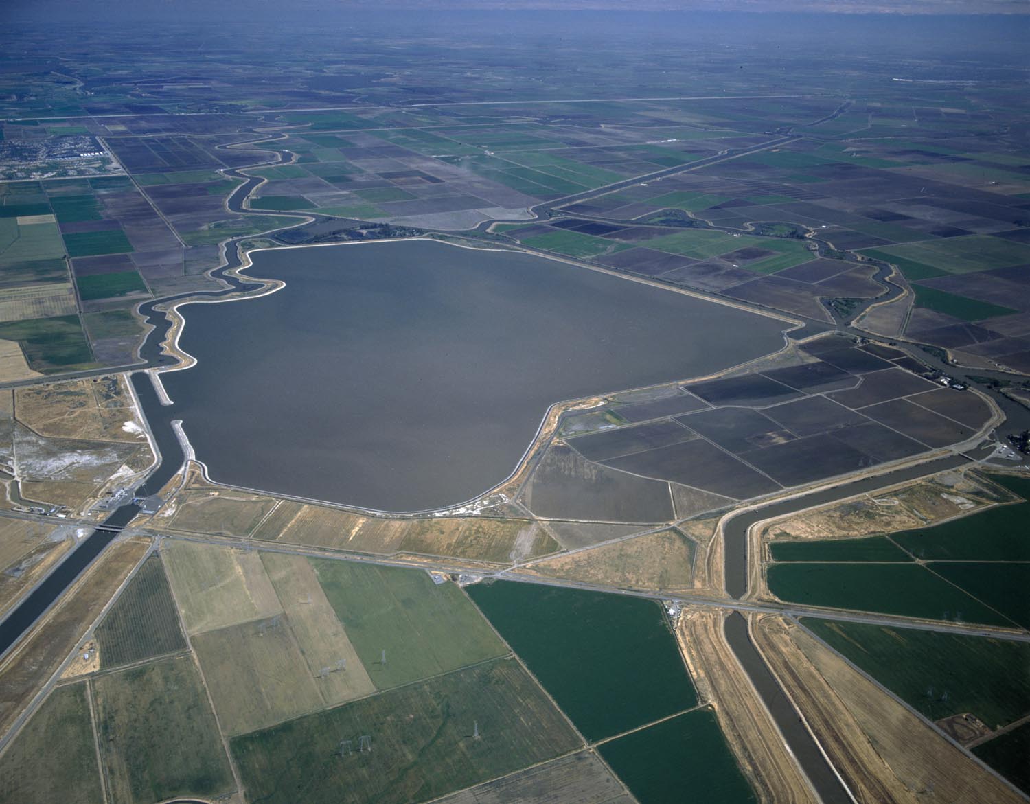 Photo of Clifton Court Forebay on the South Delta, the body of water created in 1969 that serves as the Mile Zero intake point of the California Aqueduct and feeds the Delta–Mendota Canal. Photo courtesy of the Department of Water Resources (DWR).