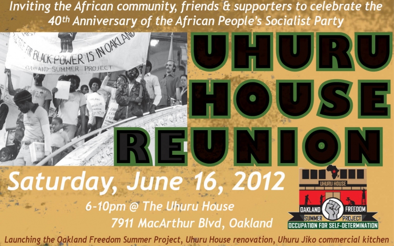 The Uhuru House Reunion will bring together all past, current and future supporters of the movement to transform the current conditions that African people face in Oakland.