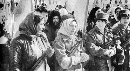 "John Smith" has not even challenged one of the facts I have presented in any specific and meaningful way. As for the Afghanis supposedly being happier as a result of the mujahideen "liberation", here is a photo of woman volunteers who fought desperately to stop a U.S. / mujahideen victory in Afghanistan.