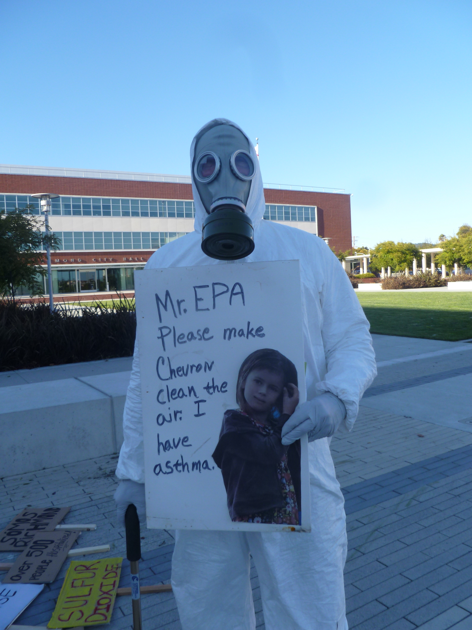 The day after a major fire at the Richmond, California Chevron refinery hundreds