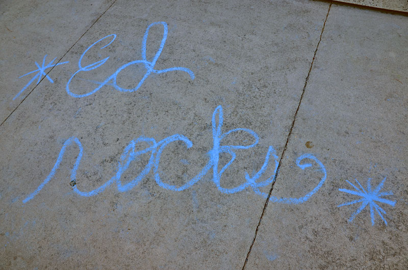 The group continued to slightly grow in numbers until after midnight, and the authorities never returned. At 8am, demonstrators reported that six people had slept on the court house steps. The morning crowd continued to grow, and when Ed Frey returned, the group was about 20 people strong. After a few brief announcements, the group was getting ready to accompany Frey to the Santa Cruz County Jail, where he was ordered to report at 9am. As they were about to cross Water Street, Joszeph Schultz, the owner of India Joze restaurant, arrived with freshly made donuts and coffee for everyone, so Frey and the group stayed and ate for a few minutes before setting off again for the jail.
