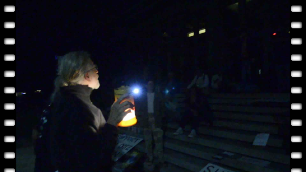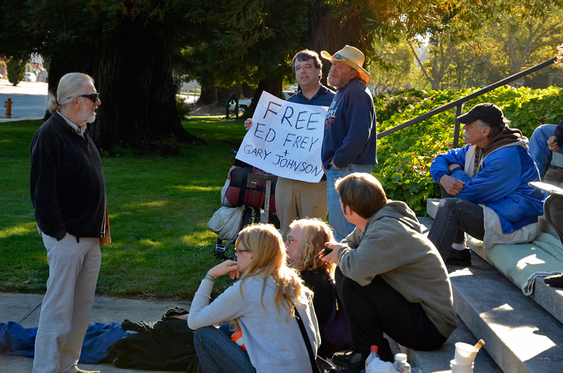 Participants in the vigil for Frey included homeless activists, members of Occupy Santa Cruz, Occupy Monterey, and Homeless United for Friendship and Freedom (HUFF), in addition to six members of the Santa Cruz Eleven.