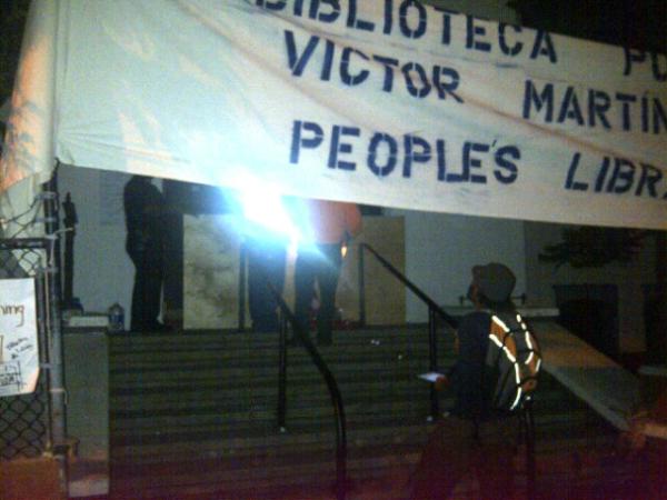 here are tweets from Biblioteca Popular coming fast and furious as raid happens: