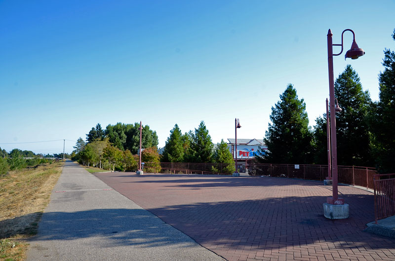 This vague and uneven communication of the law is also present on other types of signs along the San Lorenzo Riverway. Located on the west bank of the river, near Highway One, the Gateway Plaza is a shopping center with private, landscaped walkways that lead to the riverway trail. There is a small plaza built by the shopping center that lines the levee, and on it is installed a sign that states: "Notice: No Sitting/ Or Lying, No Trespassing. Violation S.C.M.C. 9-060-010." Sit-lie laws locally are written separately from the trespassing ordinances, which is what 9-060-010 is, and they are not enforceable near the river area. This sign seems to condense two ordinances into one in a confusing, but not necessarily legally accurate attempt to deter a certain type of use of the area.