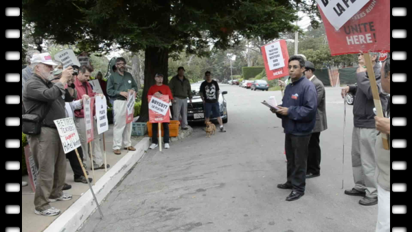 The union actions held at the hotel have continued to successfully penetrate the "business as usual" attitude at La Playa. During the hour long march and picket on August 23, at least one potential group of hotel guests changed their mind about staying at La Playa. A couple from Spain was driving a mini-van past the hotel, hoping to check to see if there were any vacancies, and when they encountered the large group of demonstrators in front of the lobby entrance they asked about what was going on. After receiving La Playa Boycott fliers and hearing the workers' story, they decided to look for a different hotel in Carmel, and even though Unite Here has had an ongoing labor dispute with the Pine Inn, an organizer with Local 483 suggested the couple from Spain try that Carmel hotel which was, "still a union house."
