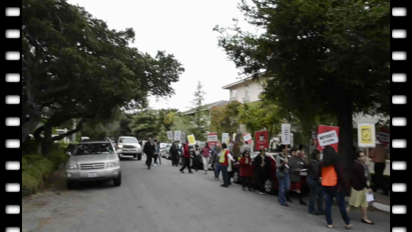 Former La Playa Carmel workers who lost their jobs after the hotel was purchased by Sam Grossman have held a dozen or so rallies over the course of the summer, vowing to continue the actions until they are offered their jobs back. The grand opening boycott rally at La Playa on August 1 saw the strongest turnout of them all. Approximately 150-200 community members picketed the hotel for its refusal to rehire the former workers. Afterward, demonstrators marched up Ocean Avenue, the main tourist destination and shopping drag in Carmel-by-the-Sea, to Devendorf Park where a lampooning of La Playa's "Grand Dame" symbolism was enacted in a street theater style skit by members of the workers' union, Unite Here Local 483.