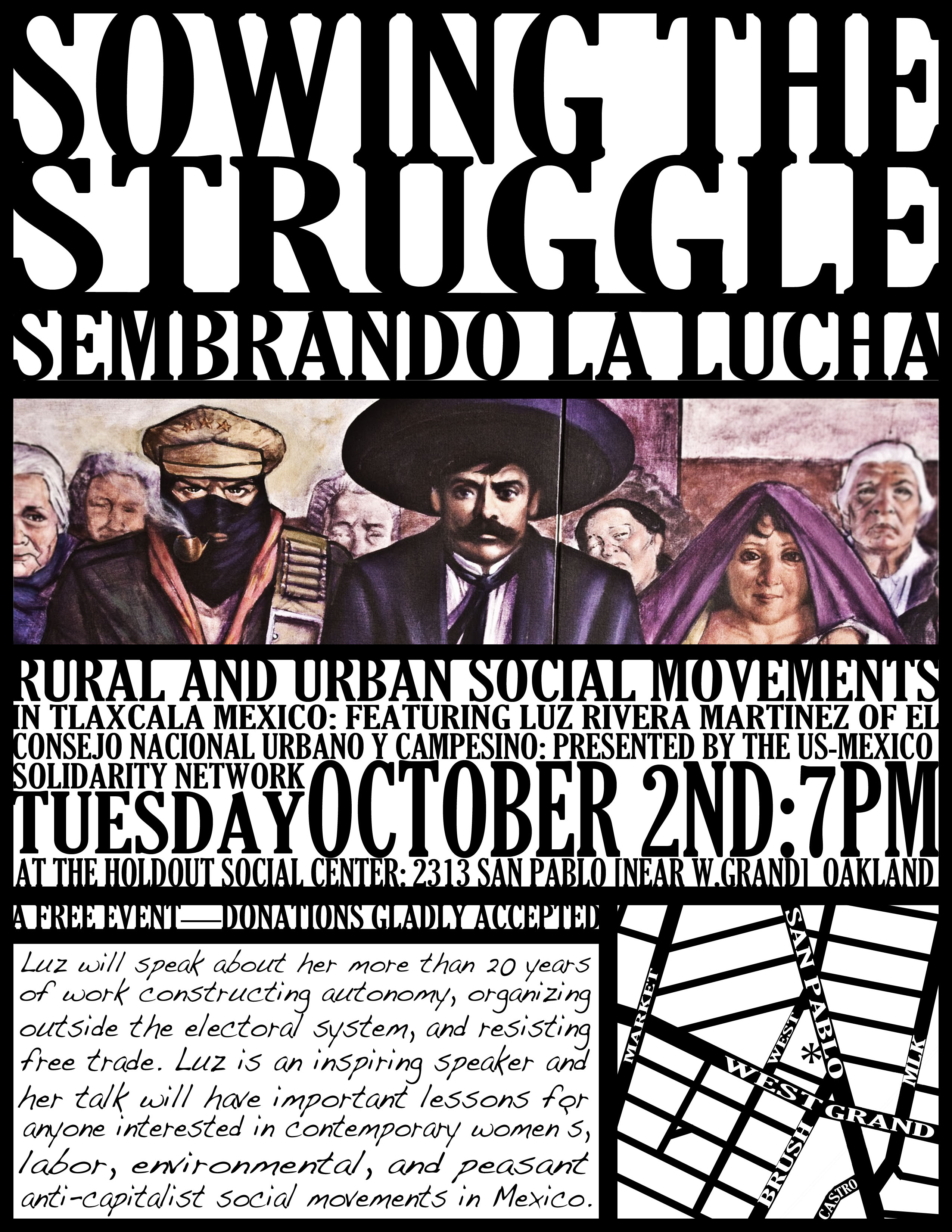 Luz Rivera Martinez will speak about her 20 years of experience constructing autonomy, organizing outside the electoral system, and resisting free trade. Luz is an inspiring speaker and her talk will have important lessons for anyone interested in women's, peasant, and labor movements.