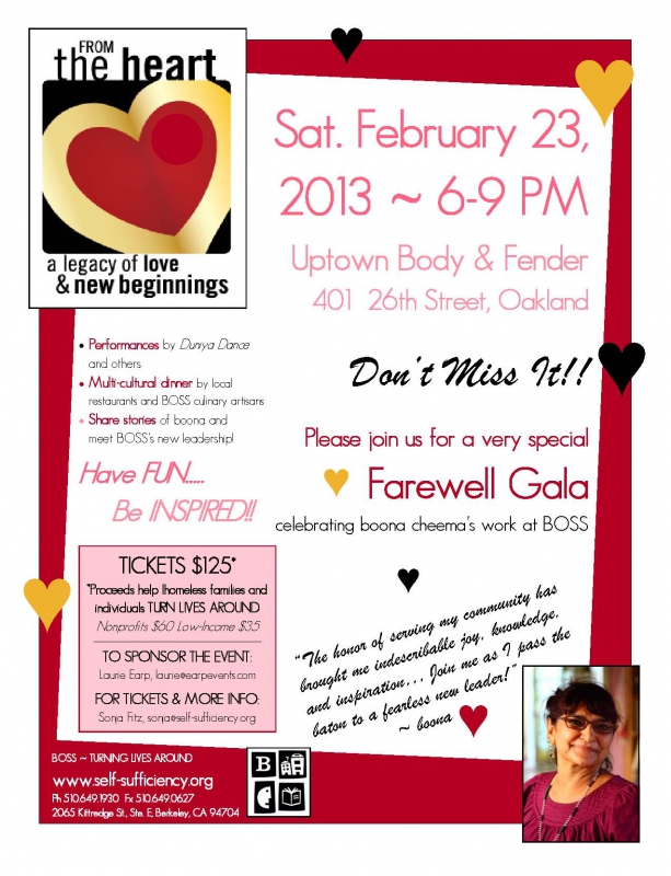 In February BOSS's Executive Director of 33+ years will hand over her baton to a new leader. We are celebrating this transition with an amazing, unforgettable gala full of music, dance, food, friends, stories, and love.