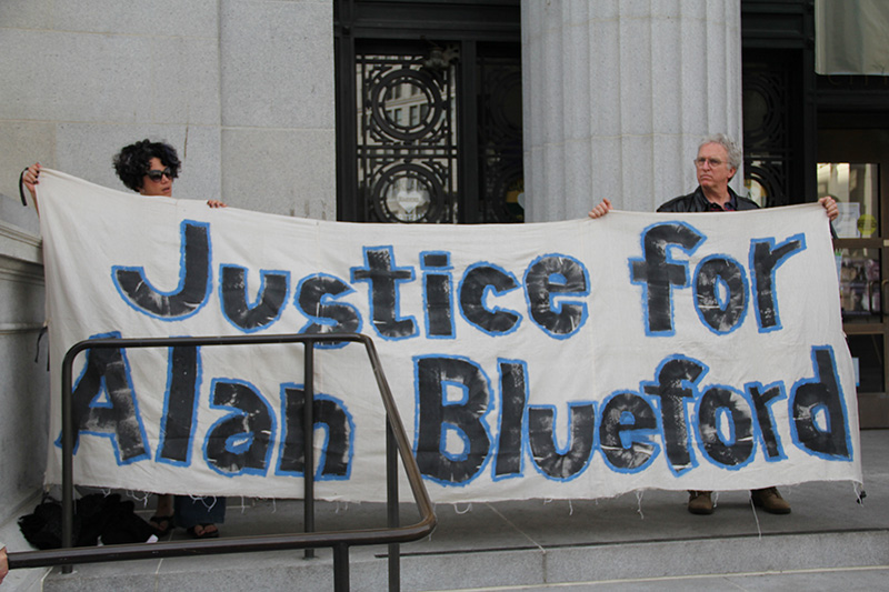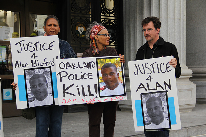 Siegel and Riley noted that contrary to the initial OPD statements about the killing of Alan Blueford that there had been a gun battle, the police reports show no such thing. It was Oakland officer Miguel Masso who shot himself in the foot. Witness statements make clear that Alan Blueford had fallen and was on the ground struggling to get up when Masso shot him three times. Alan Blueford's last words were, "I didn’t do anything." Siegel and Riley make plain that they believe the killing was a murder, when a police officer stands above and shoots down at an unarmed person on the ground below. Fear for his life or safety, that Masso likely claims as some sort of self-defense, can not be justified by the known facts of the case, only by Masso's racist fear of a young African American man.