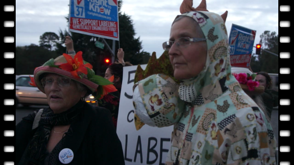 In this short video, Raging Granny Ellyn O'Toole stands by a two-headed chicken (Granny Catherine in costume) and explains why the Raging Grannies are in favor of a YES vote on prop 37. The proposition merely requires labeling and doesn't ban any foods. California can pave the way for the nation, so that the US can go the way of much of the world that already requires GMO labeling in foods.