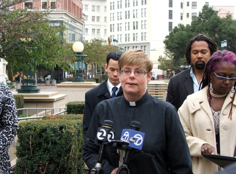 Pastor Torbett said that people connected to the interfaith tent from the encampment were still actively to taking nonviolent action for justice and called for justice for Alan Blueford and Oscar Grant.