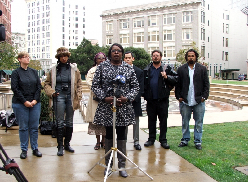 Standing in Oscar Grant Plaza, flanked by an ad hoc group of noteworthy Occupy activists, Samsarah Morgan explained why the press conference was called.