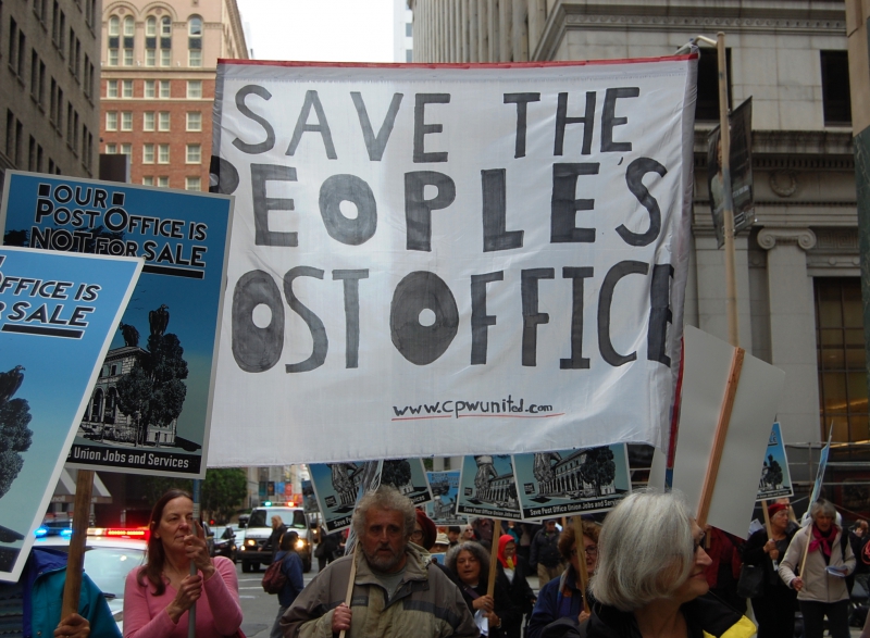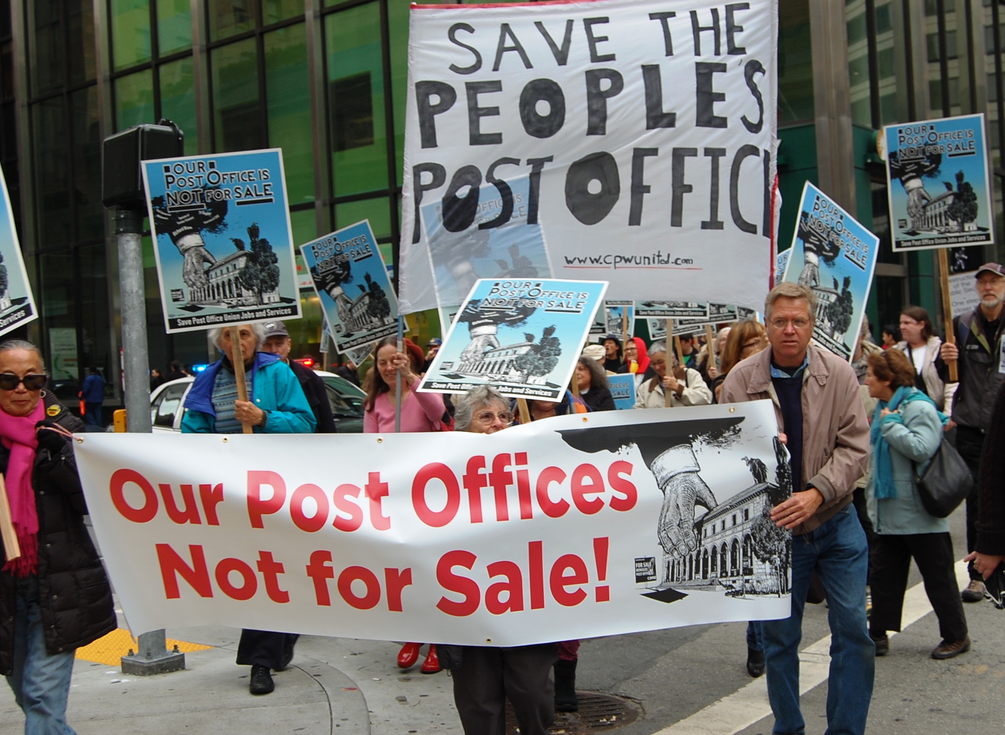 A union member of the American Postal Workers Union told us the union leadership has not pushed against these sales. The director of the United Parcel Service, Gary MacDougal, stated in the Wall Street Journal this fall. “Entrepreneurs will see the demise of the USPS as an opportunity...this transition can be one of the badly needed bright spots in a troubled American economy.” Postmaster General Donahoe led the charge to end six-day delivery; close 4,000 post offices eliminate 250 processing plants and 200,000 decent union jobs.