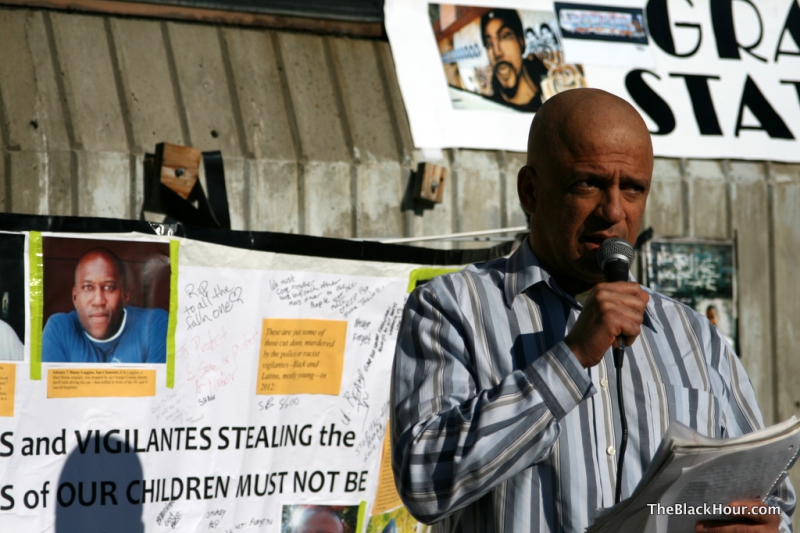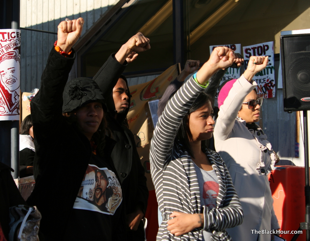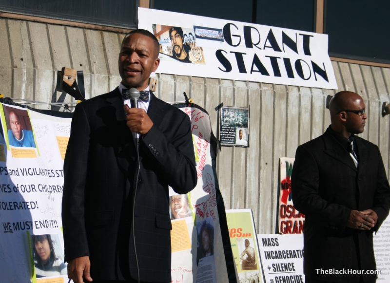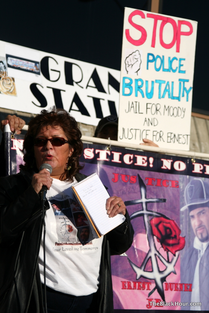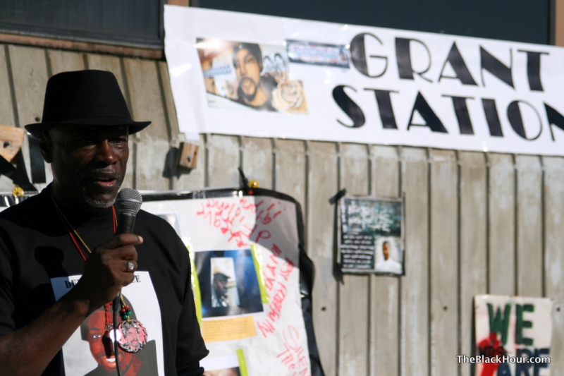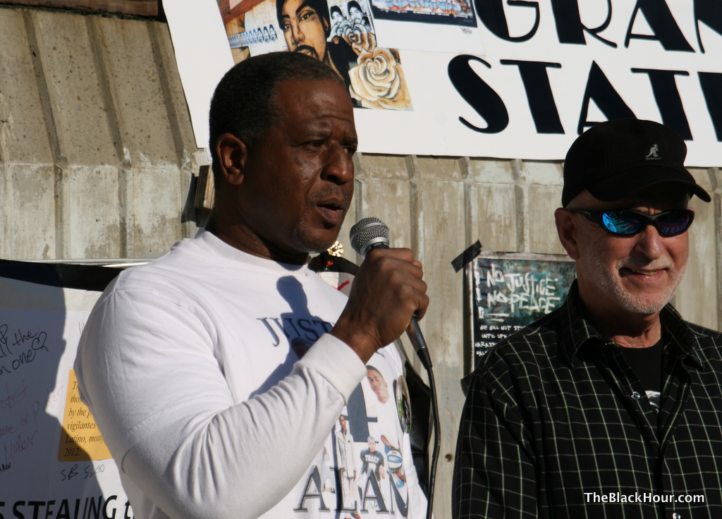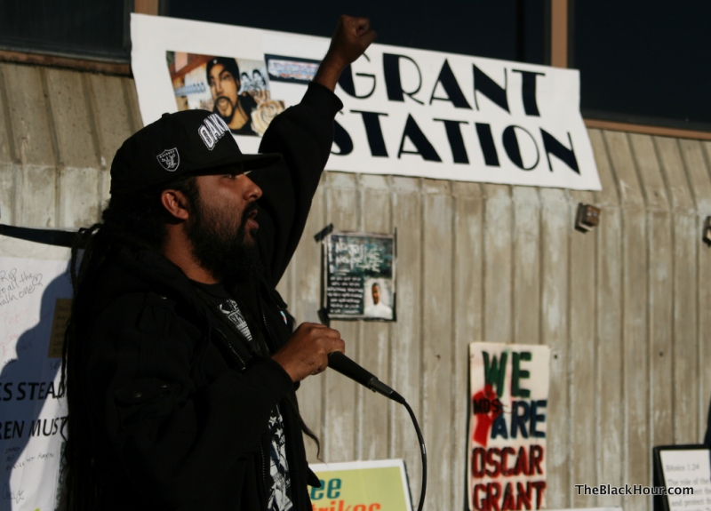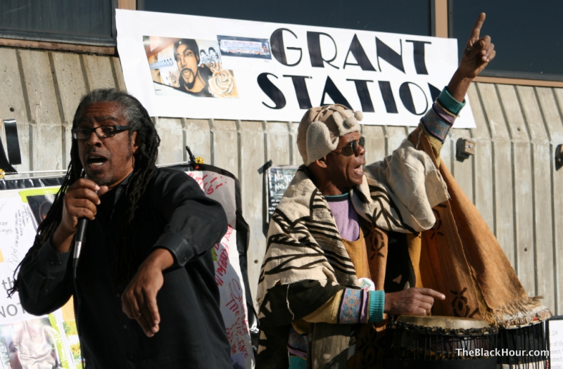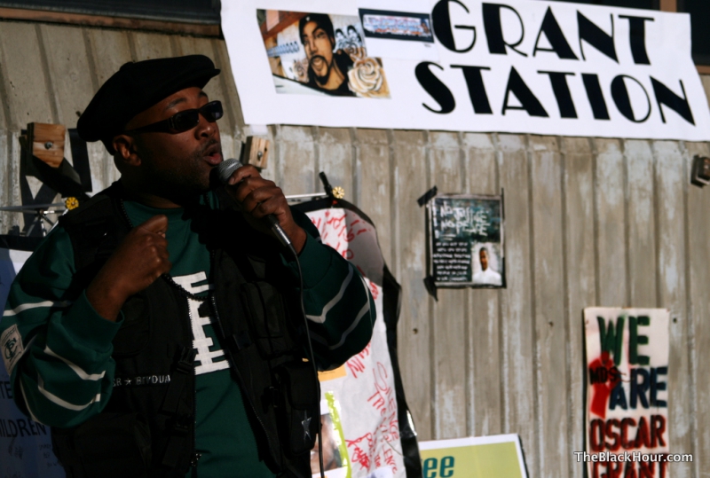 Speakers, poets, and singers spoke about the life of Oscar Grant and other victims of police terrorism as the struggle for Justice for Oscar Grant continues. Speakers included Wanda Johnson, Grant's mother, Cephus "Bobby" Johnson, Grant's uncle, Tatiana Mesa, Grant's daughter; activists: Minister Keith Muhammad, Dereca Blackmon, Tony Coleman, and artists: Malika Ubaka, Fly Benzo, Zar the Dip, and Ras Ceylon, and more. Family members of other victims of police terror spoke out, including Denika Chatman, mother of Kenneth Harding, Jr., Adam Blueford, father of Alan Blueford, and Rosemary Duenez, mother of Ernest Duenez, Jr.