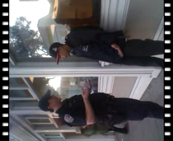 While I was recording, one of the young men (who said his name was Frank Harris I believe), said he had gone into the bank to charge his phone. He also said something about is other friend, a young Filipino coming out of the bank now, was checking his bank account. The two African-American men where then asked to stand against the wall.