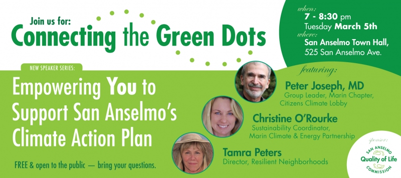 Connecting the Green Dots Speakers Event: Empowering You to Support San Anselmo’s Climate Action Plan