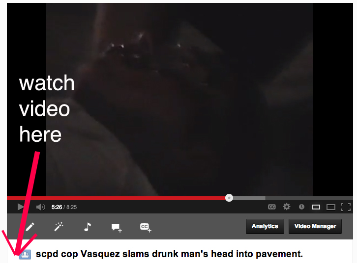 SCPD Officer Vasquez Slams Drunk Man's Face On Pavement