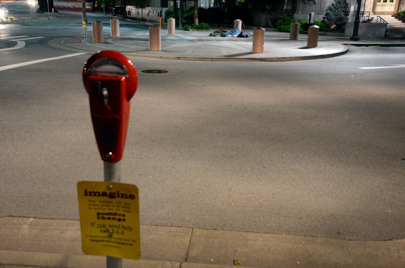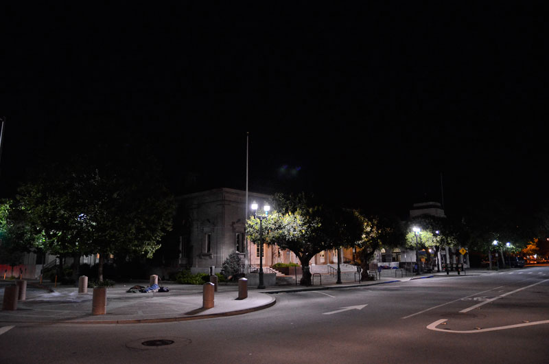 At 3am on Sunday morning (April 21), approximately two dozen people could be seen sleeping in a variety of other public locations that were within a two block radius of the post office.