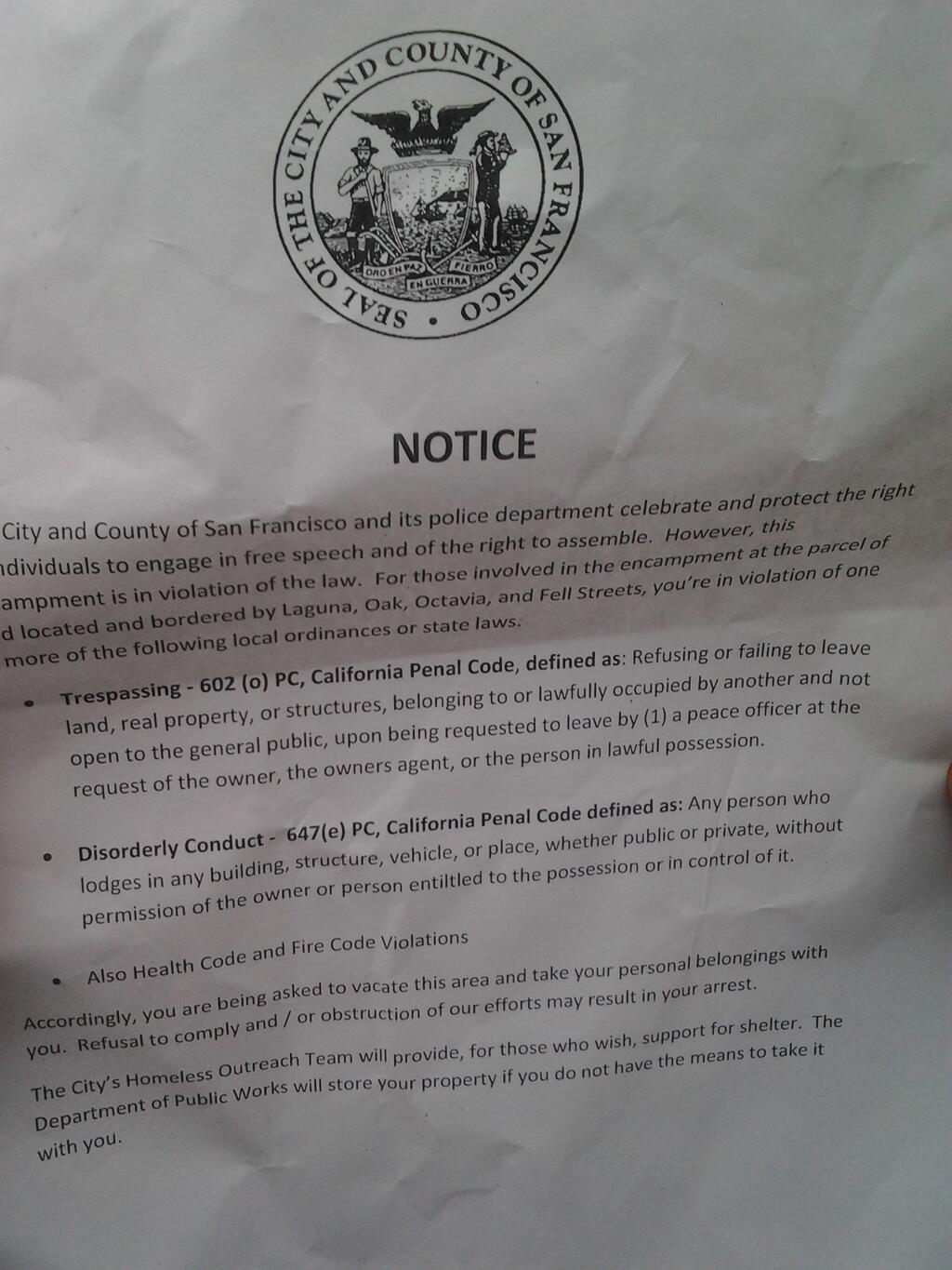 "Tree sitters, activists and community members have been served with a notice to vacate the land known as the former Hayes Valley Farm, now christened Gezi Gardens. Police cite Trespassing , Disorderly Conduct, health code, and fire code violations. We reject the conversion of greenspace into luxury apartment developments, and encourage the community to assist in creating an alternate vision that provides the affordable housing the city needs without compromising one of our last open spaces.