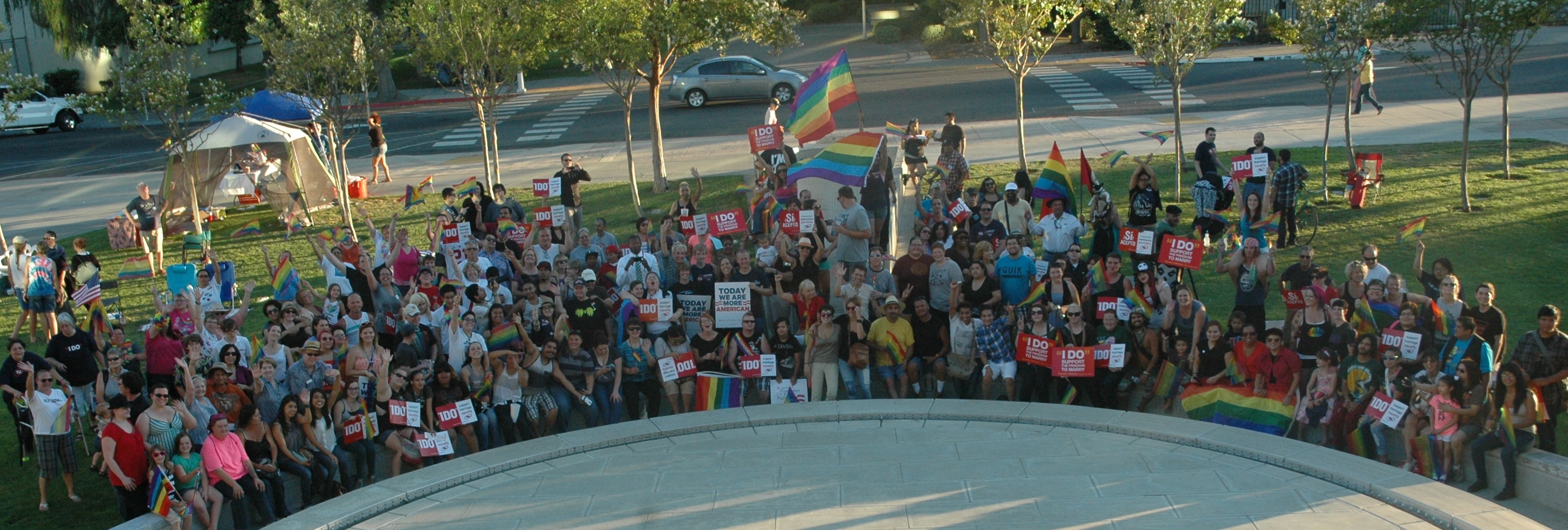 Marriage Equality USA and Gay Fresno hosted a community event in Fresno, outside of Fresno City Hall in the plaza. The rally featured analysis of the Prop. 8 & DOMA decisions, gay and lesbian couples who want to wed and a diverse array of community leaders and speakers.
