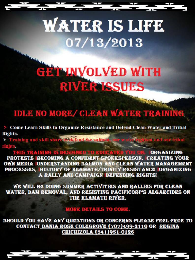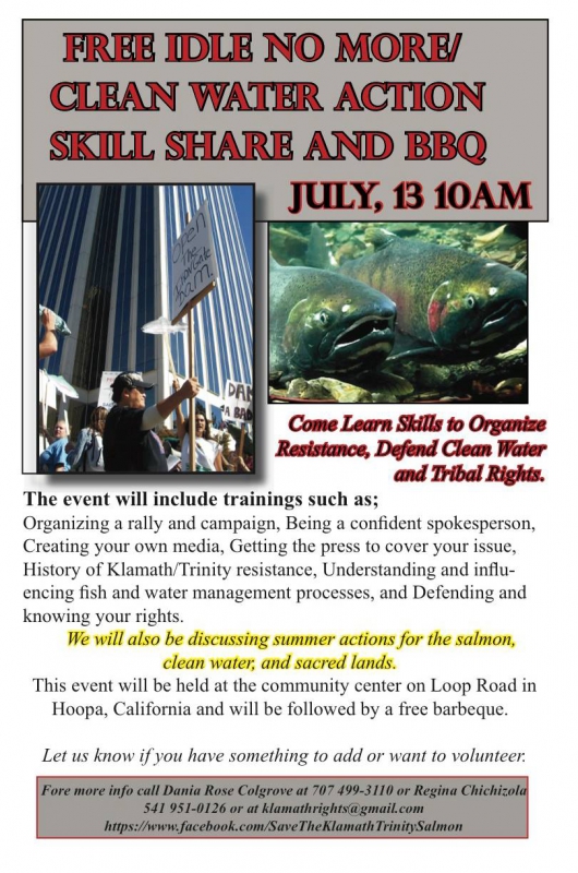 The event will include trainings such as; organizing a rally and campaign, being a confident spokesperson, creating your own media, getting the press to cover your issue, history of Klamath/Trinity resistance, understanding and influencing fish and water management processes, and defending and knowing your rights.